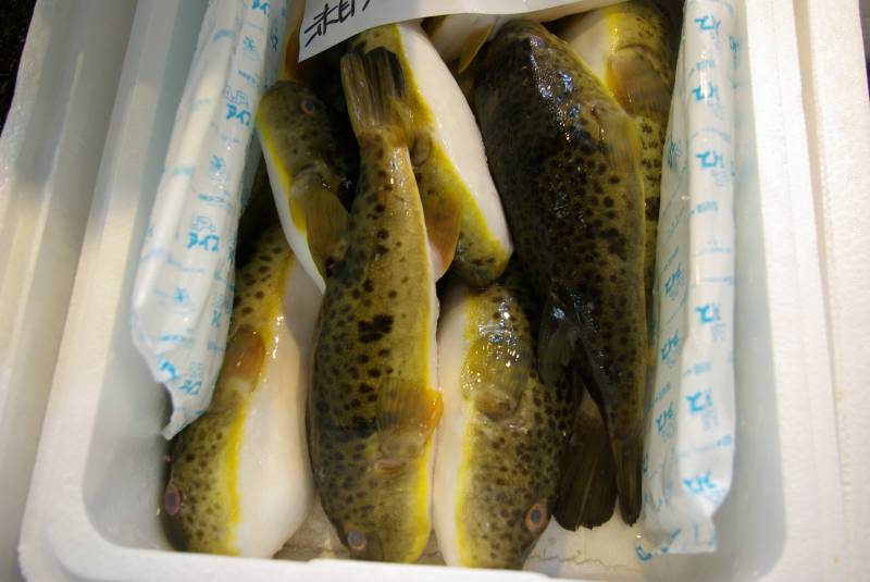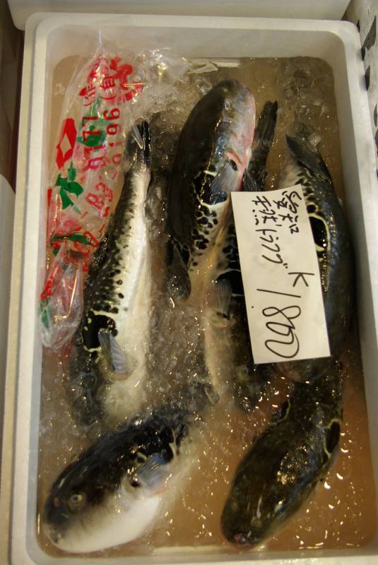 Deadly Fugu at the Tsukiji early morning Fish Market in Tokyo.