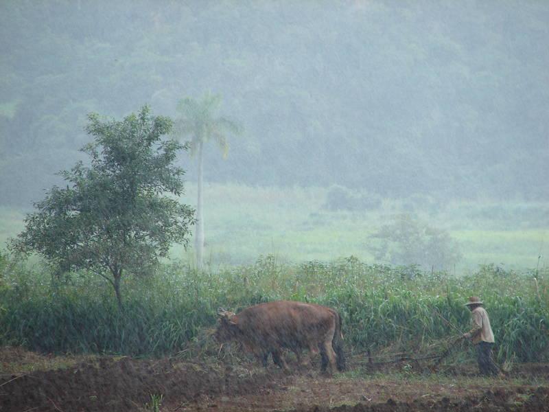 Farming in the rain, Vi�ales valley.