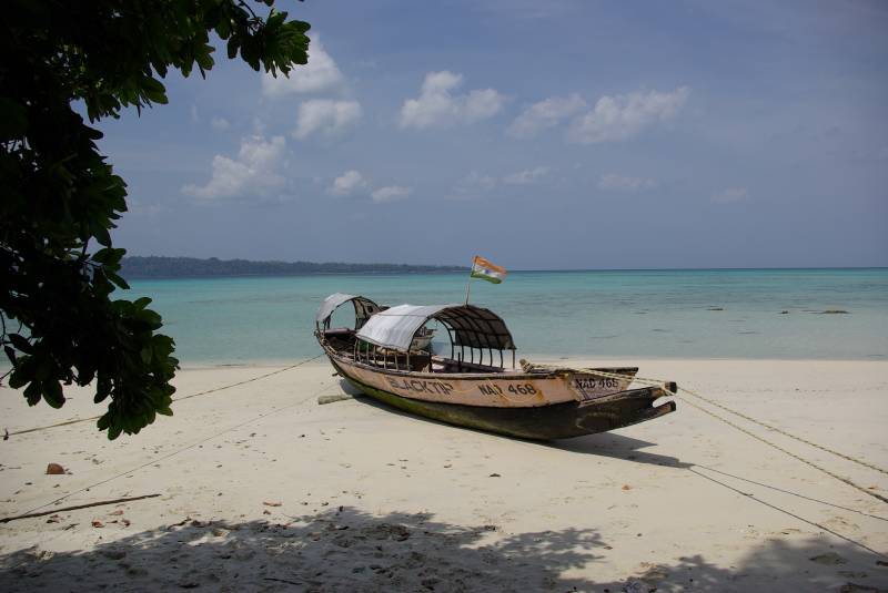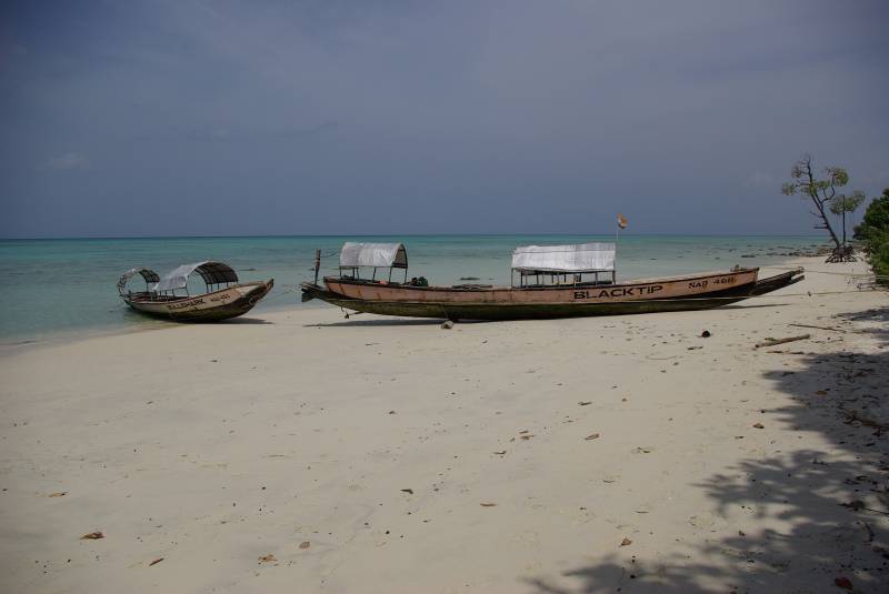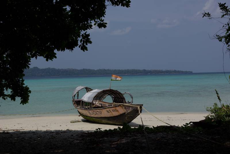One of the dive boats on the beach at Vinnie's, Havelock Island.