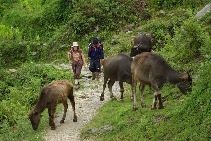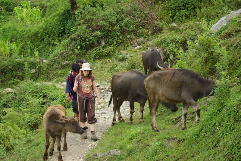 Edel navigating the obstacles on the trek near Tolka village.