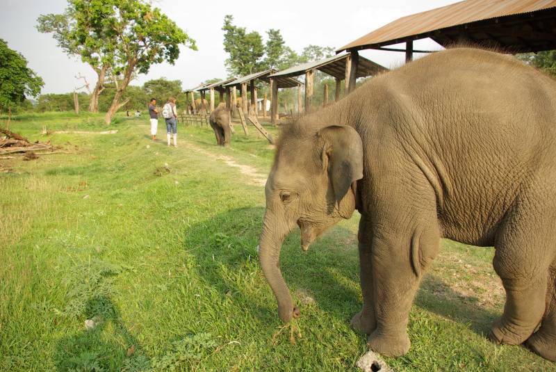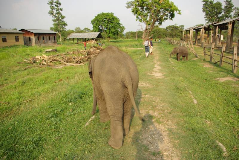 Elephants in the breeding center by Sauraha near Chitwan National Park.